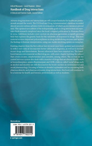 Adverse drug reactions and interactions are still a major headache for healthcare professionals around the world. The US Food and Drug Administration's database recorded almost 300,000 serious adverse events in 2009 alone, of which 45,000 instances proved fatal. This updated new edition of the indispensable guide to drug interactions incorporates fresh research completed since the book's original publication by Humana Press in 2004. Additions include a new section on pharmacogenomics, a rapidly growing field that explores the genetic basis for the variability of responses to drugs. This new material reviews important polymorphisms in drug metabolizing enzymes and applies the findings to forensic interpretation, using case studies involving opiates as exemplars.