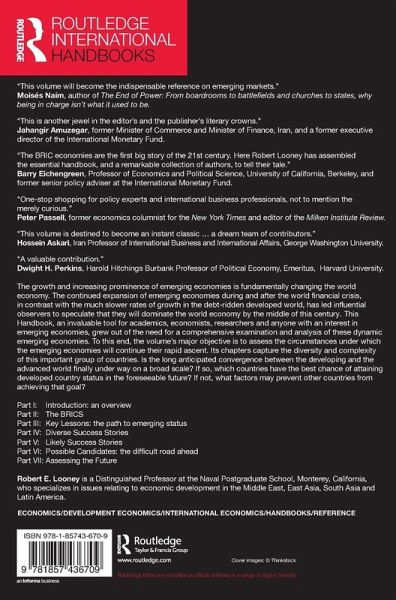 A new volume in the Routledge International Handbooks series analysing emerging and newly emerged economies, including the BRIC countries and other candidates for emerging economy status, offering an overview of issues in development economics.