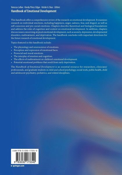 The Handbook of Emotional Development is an essential resource for researchers, clinicians/professionals, and graduate students in child and school psychology, social work, public health, child and adolescent psychiatry, pediatrics, and related disciplines.