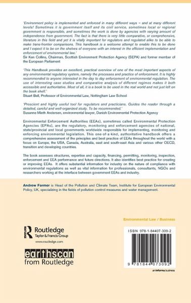 Environmental Enforcement Authorities (EEAs), sometimes called Environmental Protection Agencies (EPAs), are the regulatory, monitoring and enforcement agencies of national, state/provincial and local governments worldwide responsible for implementing, monitoring and enforcing environmental legislation. This one-of-a-kind, authoritative handbook offers a comprehensive assessment of the principles and best practice of EEAs throughout the world with a focus on Europe, the USA, Canada, Australia, east and south-east Asia and various other OECD, transition and developing countries.The book assesses structures, expertise and capacity, financing, permitting, monitoring, inspection, enforcement and EEA performance and future directions. It also identifies best practice for creating or improving EEAs. It offers substantial information for industry on the nature of compliance with environmental regulations as well as vital information for professionals, consultants, NGOs and researchers working at the interface between government EEAs and industry.