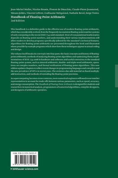 This handbook is a definitive guide to the effective use of modern floating-point arithmetic, which has considerably evolved, from the frequently inconsistent floating-point number systems of early computing to the recent IEEE 754-2008 standard. Most of computational mathematics depends on floating-point numbers, and understanding their various implementations will allow readers to develop programs specifically tailored for the standard's technical features. Algorithms for floating-point arithmetic are presented throughout the book and illustrated where possible by example programs which show how these techniques appear in actual coding and design.