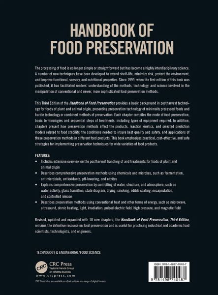 The ever-increasing number of food products and preservation techniques creates a great demand for an up to date handbook that will facilitate understanding of the methods, technology, and science involved in the manipulation of these conventional and sophisticated preservation methods. Extensively revised, reorganized, and expanded from 43 to 66 chapters, the Handbook of Food Preservation, Third Edition, remains the definitive resource on food preservation. An entirely new section is devoted to issues related to and that impact food preservation, including biotechnology, food security and sustainability, food labeling and food laws and regulations.