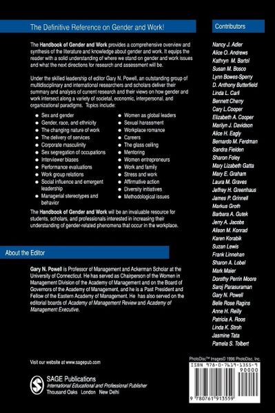 `The structure of the book does mean chapters or sections can be read in isolation, and discrete themes investigated using the indexes. This is where it succeeds as a reference work for scholars. At the same time there is much readable material for those with a general interest in the subject' - Career Guidance The Handbook of Gender and Work is a comprehensive synthesis of current literature and knowledge regarding gender in organizations. A multinational group of leading scholars and researchers from across the disciplines examines the influence of gender (on its own and with other factors) on the conduct of work and the roles and experience of people in the workplace. Amongst the topics inclu