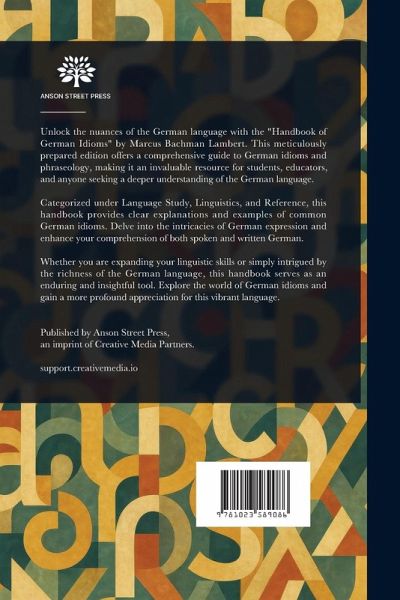 Unlock the nuances of the German language with the "Handbook of German Idioms" by Marcus Bachman Lambert. This meticulously prepared edition offers a comprehensive guide to German idioms and phraseology, making it an invaluable resource for students, educators, and anyone seeking a deeper understanding of the German language. Categorized under Language Study, Linguistics, and Reference, this handbook provides clear explanations and examples of common German idioms. Delve into the intricacies of German expression and enhance your comprehension of both spoken and written German. Whether you are…mehr