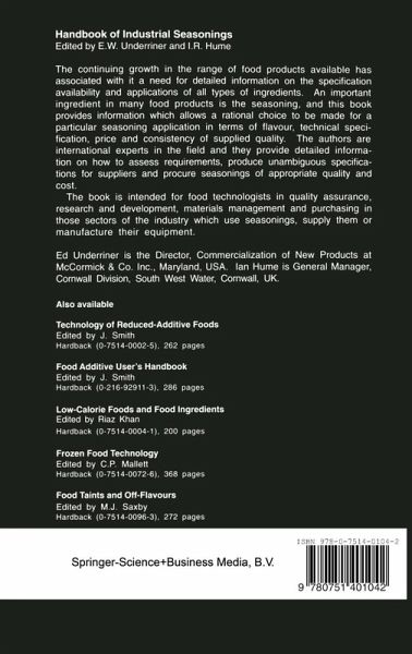 Seasoning ingredients.- Herbs and spices.- Typical seasoning formulations.- Specifying a seasoning.- Selecting a seasoning supplier.- Ingredient hygiene and safety: quality management systems.