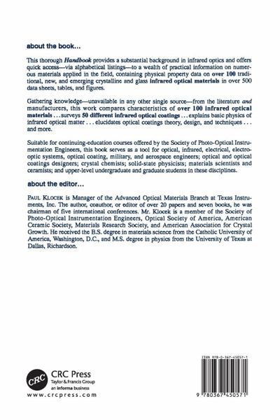 This book includes a comprehensive presentation of the fundamental physics of optical matter, the definition of material physical properties, the listing and comparison of the physical properties of infrared optical materials, and the theory, design, and survey of infrared optical coatings.