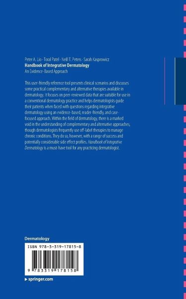 This user-friendly reference tool presents clinical scenarios and discusses some practical complementary and alternative therapies available in dermatology. It focuses on peer-reviewed data that are suitable for use in a conventional dermatology practice and helps dermatologists guide their patients when faced with questions regarding integrative dermatology using an evidence-based, reader-friendly, and case-focused approach. Within the field of dermatology, there is a marked void in the understanding of complementary and alternative approaches, though dermatologists frequently use off-label therapies to manage chronic conditions. They do so, however, with a range of success and potentially considerable side effect profiles. Handbook of Integrative Dermatology is a must-have tool for any practicing dermatologist.