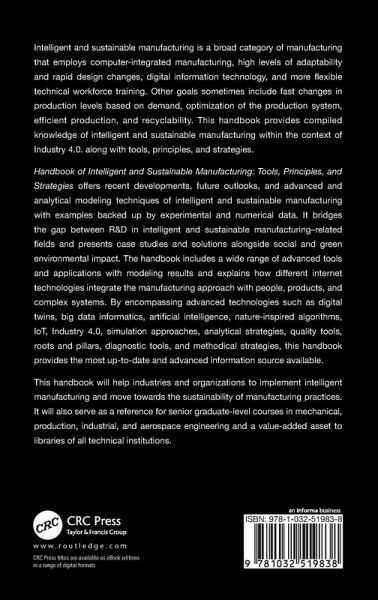 Intelligent and sustainable manufacturing employs computer-integrated manufacturing, digital information technology, flexible technical workforce training, and rapid design changes. This handbook provides a compiled knowledge of intelligent and sustainable manufacturing within the context of Industry 4.0.