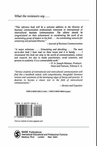 Now in paperback, this indispensable volume summarizes the state of the art in international, intercultural and developmental communication and sets the agenda for future research. It includes: an overview of major theoretical and applied issues; processes and effects in international and intercultural communication; contexts; and issues of conducting research on culture, language and communication. The volume frames the critical issues facing scholars studying language and communication, stimulates new theoretical formulations, demonstrates the application of diverse methods of research, and provides the basis for finding solutions to critical issues facing the modern world.