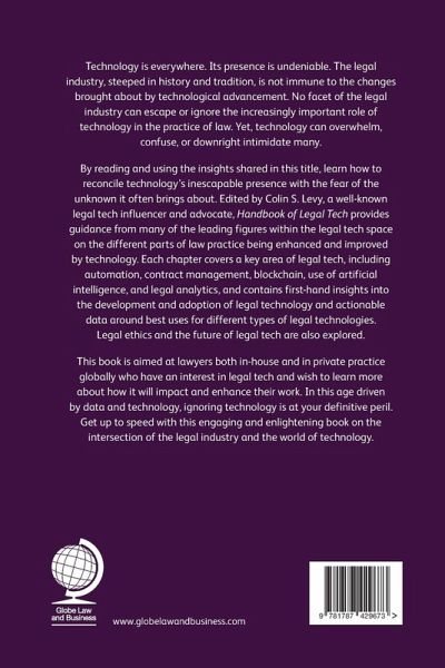 Technology is everywhere. Its presence is undeniable. The legal industry, steeped in history and tradition, is not immune to the changes brought about by technological advancement. No facet of the legal industry can escape or ignore the increasingly important role of technology in the practice of law. Yet, technology can overwhelm, confuse, or downright intimidate many. By reading and using the insights shared in this title, learn how to reconcile technology's inescapable presence with the fear of the unknown it often brings about. Edited by Colin S. Levy, a well-known legal tech influencer and advocate, Handbook of Legal Tech provides guidance from many of the leading figures within the legal tech space on the different parts of law practice being enhanced and improved by technology. Each chapter covers a key area of legal tech, including automation, contract management, blockchain, use of artificial intelligence, and legal analytics, and contains first-hand insights into the development and adoption of legal technology and actionable data around best uses for different types of legal technologies. Legal ethics and the future of legal tech are also explored. This book is aimed at lawyers both in-house and in private practice globally who have an interest in legal tech and wish to learn more about how it will impact and enhance their work. In this age driven by data and technology, ignoring technology is at your definitive peril. Get up to speed with this engaging and enlightening book on the intersection of the legal industry and the world of technology.