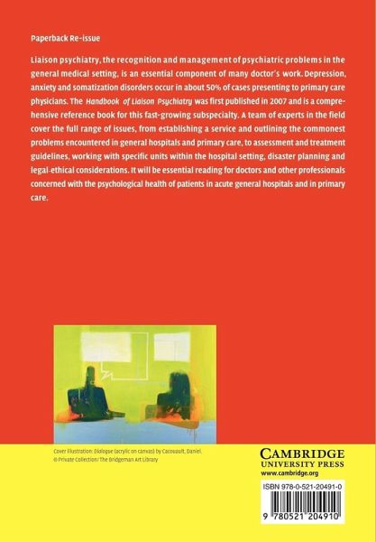 Liaison psychiatry, the recognition and management of psychiatric problems in the general medical setting, is an essential component of many doctors' work. Depression, anxiety and somatization disorders occur in about 50% of cases presented to primary care physicians. The Handbook of Liaison Psychiatry was first published in 2007 and is a comprehensive reference book for this fast-growing subspecialty. A team of experts in the field cover the full range of issues, from establishing a service and outlining the commonest problems encountered in general hospitals and primary care, to assessment and treatment guidelines, working with specific units within the hospital setting, disaster planning and legal-ethical considerations. It will be essential reading for doctors and other professionals concerned with the psychological health of patients in acute general hospitals and in primary care.
