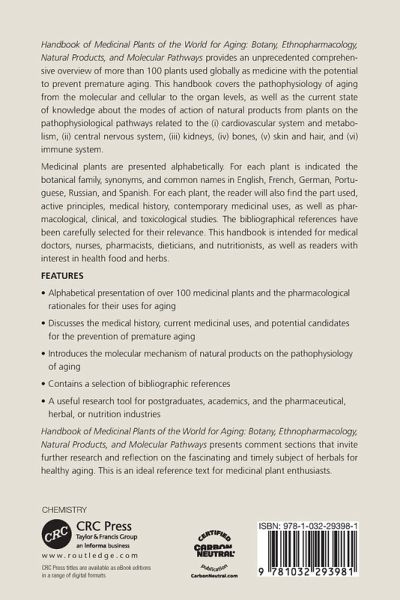 This book discusses the various medicinal plants and food plants used around the world that contribute to their people living longer and healthier lives. The text covers the physiological process of ageing from the molecular and cellular to organ levels, and also looks into skin and hair age-related effects of ageing.