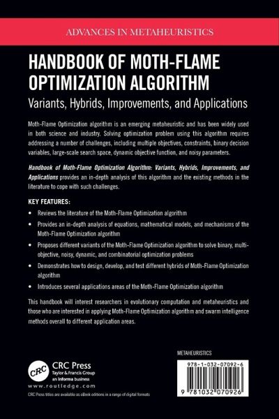 Moth-Flame Optimization algorithm is an emerging meta-heuristic published in 2015. This book provides in-depth analysis of this algorithm and the existing methods to cope with challenges. It proposes improvements, variants, and hybrids of this algorithm. Applications are also covered to demonstrate the applicability of methods in this book.