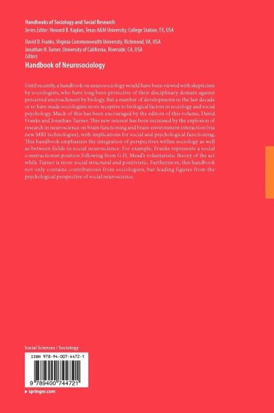 Until recently, a handbook on neurosociology would have been viewed with skepticism by sociologists, who have long been protective of their disciplinary domain against perceived encroachment by biology. But a number of developments in the last decade or so have made sociologists more receptive to biological factors in sociology and social psychology. Much of this has been encouraged by the coeditors of this volume, David Franks and Jonathan Turner. This new interest has been increased by the explosion of research in neuroscience on brain functioning and brain-environment interaction (via new MRI technologies), with implications for social and psychological functioning. This handbook emphasizes the integration of perspectives within sociology as well as between fields in social neuroscience. For example, Franks represents a social constructionist position following from G.H. Mead's voluntaristic theory of the act while Turner is more social structural and positivistic. Furthermore, thishandbook not only contains contributions from sociologists, but leading figures from the psychological perspective of social neuroscience.