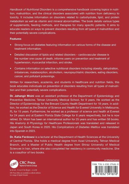 Handbook of Nutritional Disorders is a comprehensive handbook covering topics in nutrition, malnutrition, and the clinical disorders associated with nutrition from deficiency to toxicity.