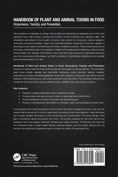 Handbook of Plant and Animal Toxins in Food: Occurrence, Toxicity, and Prevention, focuses on various selected toxins in foods derived from plants as well as animals. The prominent plant toxins include solanine and chaconine, mushroom toxins, phytates, tannins, oxalates, goitrogens, gossypol, phytohemagglutinins, erucic acid, saponins, cyanogenic glycosides, enzyme inhibitors, BOAA (lathyrogens), toxic amino acids and toxic fatty acids. The prominent animal toxins covered in the book include various seafood toxins, shellfish toxins and biogenic amines.