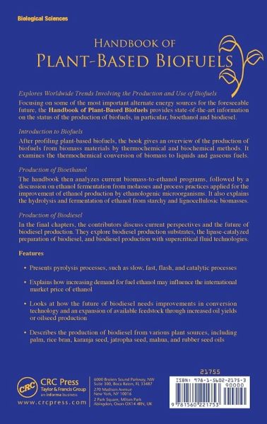 Plant-Based Biofuels: An Introduction. World Biofuel Scenario. Thermochemical Conversion of Biomass to Liquids and Gaseous Fuels. Production of Biofuels with Special Emphasis on Biodiesel.Fuel Ethanol: Current Status and Outlook. Bioethanol from Biomass: Production of Ethanol from Molasses. Bioethanol from Starchy Biomass: Part I Production of Starch Saccharifying Enzymes. Bioethanol from Starchy Biomass: Part II Hydrolysis and Fermentation. Bioethanol from Lignocellulosic Biomass: Part I Pretreatment of the Substrates. Bioethanol from Lignocellulosic Biomass: Part II Production of Cellulases and Hemicellulases. Bioethanol from Lignocellulosic Biomass: Part III Hydrolysis and Fermentation. Biodiesel: Current and Future Perspectives. Biodiesel Production Technologies and Substrates. Lipase-Catalyzed Preparation of Biodiesel. Biodiesel Production with Supercritical Fluid Technologies. Palm Oil Diesel Production and Its Experimental Test on a Diesel Engine. Biodiesel from Rice Bran Oil. Biodiesel Production Using Karanja (Pongamia pinnata) and Jatropha (Jatropha curcas) Seed Oil. Biodiesel Production from Mahua Oil and Its Evaluation in an Engine. Biodiesel Production from Rubber Seed Oil.