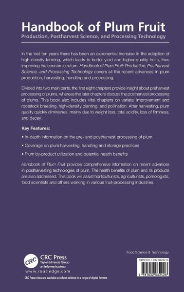 In the last ten years there has been an exponential increase in the adoption of high-density farming, which leads to better yield and higher-quality fruits, thus improving the economic return. Handbook of Plum Fruit: Production, Postharvest Science, and Processing Technology covers all the recent advances in plum production, harvesting, handling and processing. Divided into two main parts, the first eight chapters provide insight about preharvest processing of plums, whereas the later chapters discuss the postharvest processing of plums. This book also includes vital chapters on varietal improvement and rootstock breeding, high-density planting, and pollination. After harvesting, plum quality quickly diminishes, mainly due to weight loss, total acidity, loss of firmness, and decay. Key Features: In-depth information on the pre- and postharvest processing of plums Coverage on plum harvesting, handling, and storage practices Plum by-product utilization and potential health benefits Handbook of Plum Fruit provides comprehensive information on recent advances in postharvesting technologies of plum. The health benefits of plum and its products are also addressed. This book will assist horticulturists, agriculturists, pomologists, food scientists and others working in various fruit-processing industries.