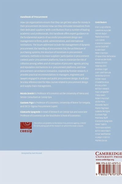How can organizations ensure that they can get best value for money in their procurement decisions? How can they stimulate innovations from their dedicated suppliers? With contributions from leading academics and professionals, this 2006 handbook offers expert guidance on the fundamental aspects of successful procurement design and management in firms, public administrations, and international institutions. The issues addressed include the management of dynamic procurement; the handling of procurement risk; the architecture of purchasing systems; the structure of incentives in procurement…mehr