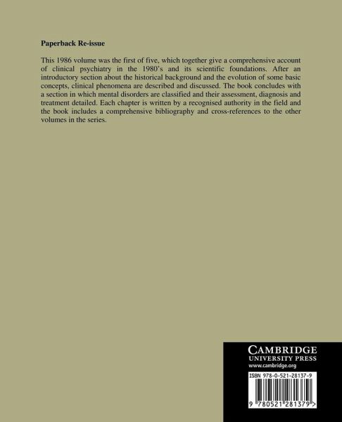 This volume was the first of five, which together give a comprehensive account of clinical psychiatry and its scientific foundations.