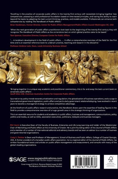 'The Handbook of Public Affairs will be a valuable resource for the growing number of public affairs practitioners who seek to balance an appreciation of the global evolution of their profession with the 'hands-on' reality of applying core concepts and theories to their organisation's management practices'