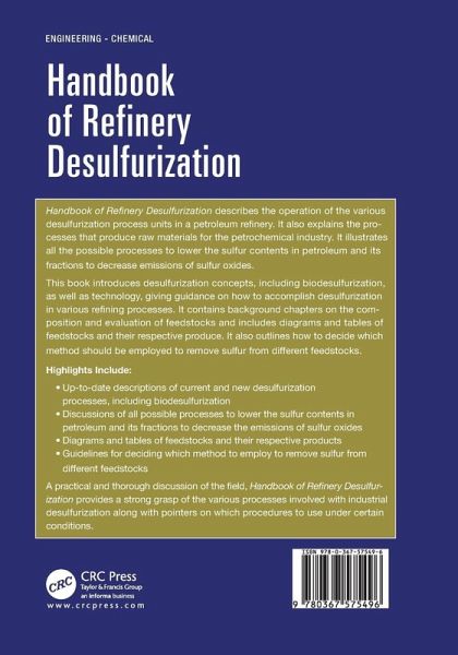 A practical and thorough discussion of the field, Handbook of Refinery Desulfurization gives you a strong grasp of the various processes involved with industrial desulfurization while giving you pointers on which procedures to use under certain conditions.