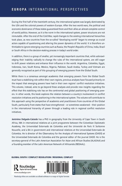 During the first half of the twentieth century, the international system was largely dominated by the USA and the colonial powers of western Europe. After the two world wars, the political and economic dominance of these states guaranteed them and their allies an almost complete control of world politics. However, as it is the norm in the international system, power structures are not immutable. After the end of the Cold War, rapid changes to the existing international hierarchies took place, as new countries from the so-called ''developing world'' began to emerge as crucial actors capable of questioning and altering the power dynamics of the world. It is therefore unthinkable to ignore emerging countries such as Russia, the People's Republic of China, India, Brazil or South Africa in the decision-making process in today's world order. In addition, there is a group of smaller, yet increasingly important countries that, while acknowledging their inability radically to change the rules of the international system, are still eager to shift power relations and enhance their influence in the world. Argentina, Colombia, Egypt, Indonesia, Iran, South Korea, Mexico, Nigeria, Pakistan, Saudi Arabia, Turkey and Vietnam are generally recognised as part of this grouping of emerging powers from the Global South. While there is a consensus amongst academics that emerging powers from the Global South must have a stabilising role within their own regions, previous analyses have focused primarily on the impact that emerging powers have had in their own regions' conflict resolution initiatives. This volume, instead, aims to go beyond these analyses and provide new insights regarding the effect that this stabilising role has on the continental and global positioning of emerging powers. In other words, this book explores the relation between a country's involvement in conflict resolution initiatives and its positioning in the international system. The volume will contribute to this approach using the perspective of academics and practitioners from countries of the Global South, particularly from states that have strengthened - or sometimes weakened - their position in the international hierarchy of power through a leading role in regional conflict resolution initiatives.