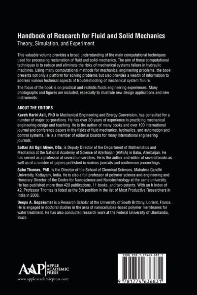 Kaveh Hariri Asli, PhD in Mechanical Engineering and Energy Conversion, has consulted for a number of major corporations. He has over 30 years of experience in practicing mechanical engineering design and teaching. Professor Hariri Asli is the author of many books and over 100 international journal and conference papers in the fields of fluid mechanics, hydraulics,and automation and control systems, published by Apple Academic Press, CRC Press, Springer, and others. He is the member of editorial boards for many international engineering journals. Soltan Ali Ogli Aliyev, DSc, is Deputy Director of the Department of Mathematics and Mechanics at the National Academy of Science of Azerbaijan (AMEA) in Baku, Azerbaijan. He has served as a professor at several universities. He is the author and editor of several books as well as of a number of papers published in various journals and conference proceedings. Sabu Thomas, PhD, is the Director of the School of Chemical Sciences, Mahatma Gandhi University, Kottayam, India. He is also a full professor of polymer science and engineering and the Honorary Director of the Centre for Nanoscience and Nanotechnology of the same university. He is a fellow of many professional bodies. Professor Thomas has authored or co-authored many papers in international peer-reviewed journals in the area of polymer processing. He has organized several international conferences and has more than 420 publications, 11 books and two patents to his credit. He has been involved in a number of books both as author and editor. He is a reviewer to many international journals and has received many awards for his excellent work in polymer processing. His h Index is 42, Professor Thomas is listed as the 5th position in the list of Most Productive Researchers in India, in 2008. Deepu A. Gopakumar is a Research Scholar at the University of South Brittany, Lorient, France. He is engaged in doctoral studies in the area of nanocellulose-based polymer membranes for water treatment. He has also conducted research work at Federal University of Uberlandia, Brazil.