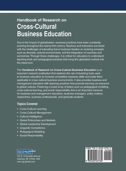 Due to the impact of globalization, business practices have been constantly evolving throughout the twenty-first century. Teachers and instructors are faced with the challenges of educating future business leaders on evolving concepts such as diversity, cultural environments, and the integration of countries and economies. Through these challenges, it is critical for educators to understand teaching tools and pedagogical practices that bring this globalized outlook into the classroom. The Handbook of Research on Cross-Cultural Business Education is an important research publication that explores the role of teaching tools used in business education to increase competitive business skills and make them applicable in cross-cultural business environments. It also provides business and management educators with teaching practices that promote learning via exposure to global cultures. Featuring a broad array of topics such as pedagogical modeling, cross-cultural learning, and social responsibility, this is an important resource for business and management educators, business managers, policy makers, researchers, business professionals, and graduate students.