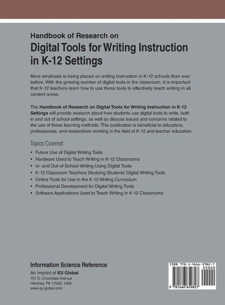 More emphasis is being placed on writing instruction in K-12 schools than ever before. With the growing number of digital tools in the classroom, it is important that K-12 teachers learn how to use these tools to effectively teach writing in all content areas. The Handbook of Research on Digital Tools for Writing Instruction in K-12 Settings will provide research about how students use digital tools to write, both in and out of school settings, as well as discuss issues and concerns related to the use of these learning methods. This publication is beneficial to educators, professionals, and researchers working in the field of K-12 and teacher education.