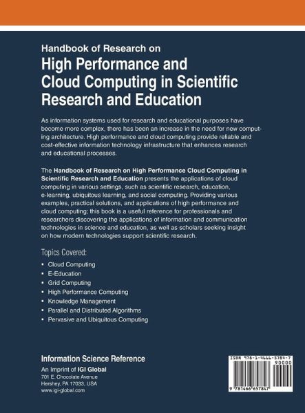 As information systems used for research and educational purposes have become more complex, there has been an increase in the need for new computing architecture. High performance and cloud computing provide reliable and cost-effective information technology infrastructure that enhances research and educational processes. Handbook of Research on High Performance and Cloud Computing in Scientific Research and Education presents the applications of cloud computing in various settings, such as scientific research, education, e-learning, ubiquitous learning, and social computing. Providing various examples, practical solutions, and applications of high performance and cloud computing; this book is a useful reference for professionals and researchers discovering the applications of information and communication technologies in science and education, as well as scholars seeking insight on how modern technologies support scientific research.