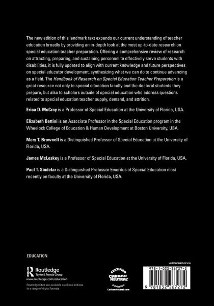 Erica D. McCray is a Professor of Special Education at the University of Florida, USA. Elizabeth Bettini is an Associate Professor in the Special Education program in the Wheelock College of Education & Human Development at Boston University, USA. Mary T. Brownell is a Distinguished Professor of Special Education at the University of Florida, USA. James McLeskey is a Professor of Special Education at the University of Florida, USA. Paul T. Sindelar is a Distinguished Professor Emeritus of Special Education most recently on faculty at the University of Florida, USA.