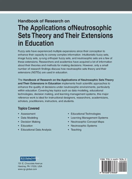 Fuzzy sets have experienced multiple expansions since their conception to enhance their capacity to convey complex information. Intuitionistic fuzzy sets, image fuzzy sets, q-rung orthopair fuzzy sets, and neutrosophic sets are a few of these extensions. Researchers and academics have acquired a lot of information about their theories and methods for making decisions. However, only a small number of research findings discuss how neutrosophic sets theory and their extensions (NSTEs) are used in education. The Handbook of Research on the Applications of Neutrosophic Sets Theory and Their Extensions in Education implements fresh scientific approaches to enhance the quality of decisions under neutrosophic environments, particularly within education. Covering key topics such as data modeling, educational technologies, decision making, and learning management systems, this major reference work is ideal for instructional designers, researchers, academicians, scholars, practitioners, instructors, and students.