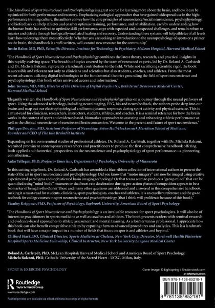 'Expanding on his own seminal studies of professional athletes, Dr. Roland A. Carlstedt, together with Dr. Michela Balconi, recruited prominent contemporary researchers and practitioners to produce the first comprehensive handbook offering both applied and theoretical perspectives on the neuroscience and psychophysiology of sport performance-a pioneering contribution...' - Auke Tellegen, PhD, Professor Emeritus, Department of Psychology, University of Minnesota
