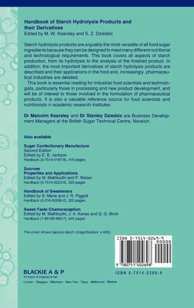 Starch hydrolysis products are arguably the most versatile of all food sugar ingredients because they can be designed to meet many different nutritional and technological requirements. This book covers all aspects of starch production, from its hydrolysis to the analysis of the finished product. In addition, the most important derivatives of starch hydrolysis products are described and their applications in the food and, increasingly pharmaceutical industries are detailed. This book is essential reading for industrial food scientists and technologists, particularly those in processing and will be of interest to those involved in the formulation of pharmaceutical products. It is also a valuable reference source for food scientists and nutritionists in academic research institutes.