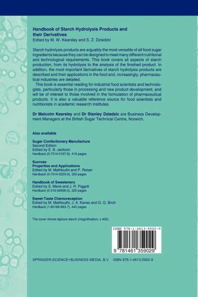 Starch hydrolysis products are arguably the most versatile of all food sugar ingredients because they can be designed to meet many different nutritional and technological requirements. This book covers all aspects of starch production, from its hydrolysis to the analysis of the finished product. In addition, the most important derivatives of starch hydrolysis products are described and their applications in the food and, increasingly pharmaceutical industries are detailed. This book is essential reading for industrial food scientists and technologists, particularly those in processing and will be of interest to those involved in the formulation of pharmaceutical products. It is also a valuable reference source for food scientists and nutritionists in academic research institutes.