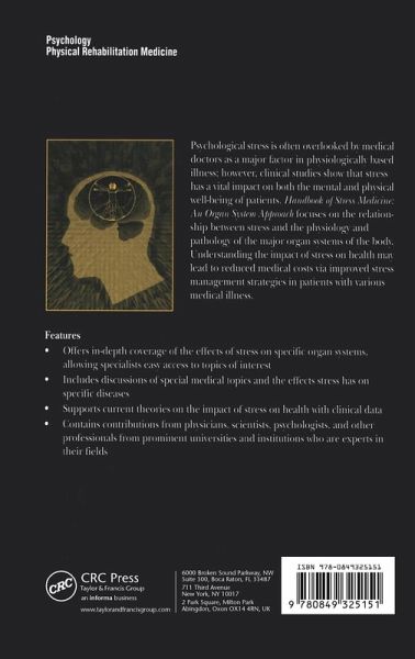 Psychological stress is often overlooked by medical doctors as a major factor in physiologically based illness; however, clinical studies show that stress has a vital impact on both the mental and physical well-being of patients. Handbook of Stress Medicine: An Organ System Approach focuses on the relationship between stress and the physiology and pathology of the major organ systems of the body. It suggests that understanding how stress impacts on illnesses can help hold down medical costs through more accurate diagnoses and promote improved preventative care.