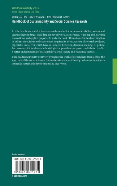 In this handbook social science researchers who focus on sustainability present and discuss their findings, including empirical work, case studies, teaching and learning innovations, and applied projects. As such, the book offers a basis for the dissemination of information, ideas and experiences acquired in the execution of research projects, especially initiatives which have influenced behavior, decision-making, or policy. Furthermore, it introduces methodological approaches and projects which aim to offer a better understanding of sustainability across society and economic sectors. This multidisciplinary overview presents the work of researchers from across the spectrum of the social sciences. It stimulates innovative thinking on how social sciences influence sustainable development and vice-versa.