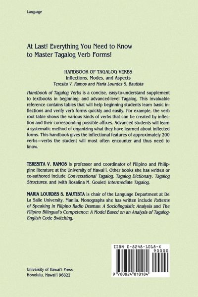 This handbook can be used by both beginning and advanced students of Tagalog. It is organized for easy use and contains verbs that a student would most likely encounter.