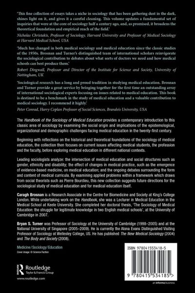 The Handbook of the Sociology of Medical Education provides a contemporary introduction to this classic area of sociology by examining the social origin and implications of the epistemological, organizational and demographic challenges facing medical education in the twenty-first century. Beginning with reflections on the historical and theoretical foundations of the sociology of medical education, the collection then focuses on current issues affecting medical students, the profession and the faculty, before exploring medical education in different national contexts. Leading sociologists analyze: the intersection of medical education and social structures such as gender, ethnicity and disability; the effect of changes in medical practice, such as the emergence of evidence-based medicine, on medical education; and the ongoing debates surrounding the form and content of medical curricula. By examining applied problems within a framework which draws from social theorists such as Pierre Bourdieu, this new collection suggests future directions for the sociological study of medical education and for medical education itself.