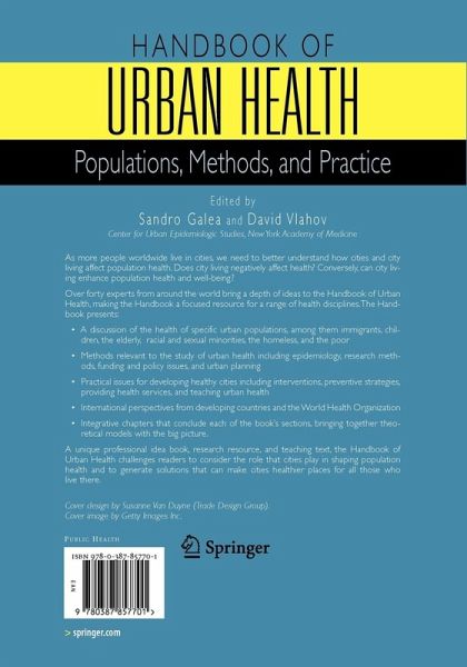 "This book takes a broad view of urban health, emphasizing urban social factors important to population health. The editors successfully bridge urban health inquiry and public health practice by combining descriptions of issues in urban health, methods used in urban health studies, and examples from practitioners.... Promoting health in cities requires an appreciation of the multiple levels of determinants that shape population health, and this handbook is a good starting point for such appreciation." (Tord Kjellstrom, Visiting Professor of Swedish National Institute of Public Health and Visiting Fellow at the National Centre for Epidemiology and Population Health, Australian National University (Environmental Health Perspectives, January 2006)