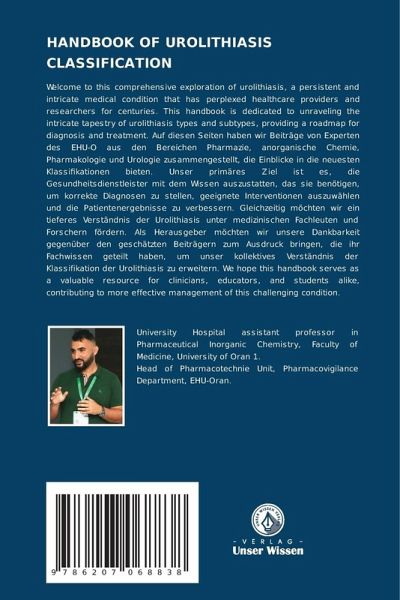 Welcome to this comprehensive exploration of urolithiasis, a persistent and intricate medical condition that has perplexed healthcare providers and researchers for centuries. This handbook is dedicated to unraveling the intricate tapestry of urolithiasis types and subtypes, providing a roadmap for diagnosis and treatment. Auf diesen Seiten haben wir Beiträge von Experten des EHU-O aus den Bereichen Pharmazie, anorganische Chemie, Pharmakologie und Urologie zusammengestellt, die Einblicke in die neuesten Klassifikationen bieten. Unser primäres Ziel ist es, die Gesundheitsdienstleister mit dem Wissen auszustatten, das sie benötigen, um korrekte Diagnosen zu stellen, geeignete Interventionen auszuwählen und die Patientenergebnisse zu verbessern. Gleichzeitig möchten wir ein tieferes Verständnis der Urolithiasis unter medizinischen Fachleuten und Forschern fördern. Als Herausgeber möchten wir unsere Dankbarkeit gegenüber den geschätzten Beiträgern zum Ausdruck bringen, die ihr Fachwissen geteilt haben, um unser kollektives Verständnis der Klassifikation der Urolithiasis zu erweitern. We hope this handbook serves as a valuable resource for clinicians, educators, and students alike, contributing to more effective management of this challenging condition.
