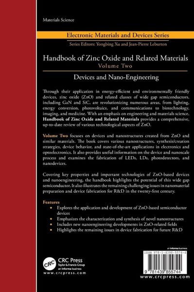 Through their application in energy-efficient and environmentally friendly devices, zinc oxide (ZnO) and related classes of wide gap semiconductors, including GaN and SiC, are revolutionizing numerous areas, from lighting, energy conversion, photovoltaics, and communications to biotechnology, imaging, and medicine. With an emphasis on engineering and materials science, Handbook of Zinc Oxide and Related Materials provides a comprehensive, up-to-date review of various technological aspects of ZnO. Volume Two focuses on devices and nanostructures created from ZnO and similar materials. The book covers various nanostructures, synthesis/creation strategies, device behavior, and state-of-the-art applications in electronics and optoelectronics. It also provides useful information on the device and nanoscale process and examines the fabrication of LEDs, LDs, photodetectors, and nanodevices. Covering key properties and important technologies of ZnO-based devices and nanoengineering, the handbook highlights the potential of this wide gap semiconductor. It also illustrates the remaining challenging issues in nanomaterial preparation and device fabrication for R&D in the twenty-first century.