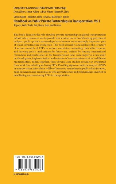 Chapter 1. Public Private Partnerships in Transportation: Airports, Water Ports, Rail, Buses, and Taxis- AN OVERVIEW.- Chapter 2. Evaluating The Viability of The Ghana Airport Cargo Centre as Publica-Private Partnership Project.- Chapter 3. The role of individual actors in public-private partnership (PPP) projects: Insights from Madinah Airport in Saudi Arabia.- Chapter 4. Models, Expectations, And Reality In Airport Public Private Partnerships.- Chapter 5. Airport Privatization in the United States.- Chapter 6. Legal Impediments to Airport P3s in the United States.- Chapter 7. Public-Private Partnerships in Port Areas: Lessons Learned from Case Studies in Antwerp and Rotterdam.- Chapter 8. Seaport PPPs in the EU: Policy, Regulatory and Contractual Issues.- Chapter 9. Sustainable Strategies for Mass Rapid Transit PPPs.- Chapter 10. Rational Inattention in Non-Profit Public-Private Partnerships: The Las Vegas Monorail Bankruptcy Case.- Chapter 11. Public -Private Partnerships inDenver, CO: Analysis of the Role of PPPs in the Financing and Construction of Transportation Infrastructure in the USA.- Chapter 12. Governance of Public Private Partnerships: Lessons from the Italian Experience in Transportation Projects.- Chapter 13. Developing Urban Rail Using Public Private Partnership - A Case Study of the Gold Coast Light Rail Project.- Chapter 14. For Hire Vehicle Regulation, misunderstanding, mismatch, control and capture: the case of Vehicles for Hire and PPP.- Chapter 15. Using History to Develop Future Regulation of TNCs and Autonomous Taxis.- Chapter 16. Distinguishing Between Demand-Risk And Availability-Payment Public-Private Partnerships.