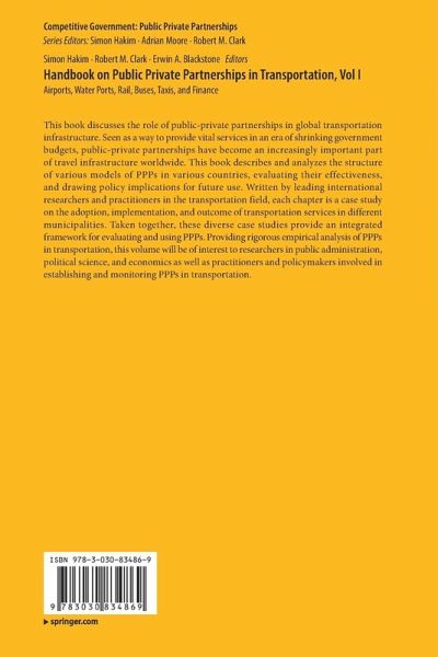 Chapter 1. Public Private Partnerships in Transportation: Airports, Water Ports, Rail, Buses, and Taxis- AN OVERVIEW.- Chapter 2. Evaluating The Viability of The Ghana Airport Cargo Centre as Publica-Private Partnership Project.- Chapter 3. The role of individual actors in public-private partnership (PPP) projects: Insights from Madinah Airport in Saudi Arabia.- Chapter 4. Models, Expectations, And Reality In Airport Public Private Partnerships.- Chapter 5. Airport Privatization in the United States.- Chapter 6. Legal Impediments to Airport P3s in the United States.- Chapter 7. Public-Private Partnerships in Port Areas: Lessons Learned from Case Studies in Antwerp and Rotterdam.- Chapter 8. Seaport PPPs in the EU: Policy, Regulatory and Contractual Issues.- Chapter 9. Sustainable Strategies for Mass Rapid Transit PPPs.- Chapter 10. Rational Inattention in Non-Profit Public-Private Partnerships: The Las Vegas Monorail Bankruptcy Case.- Chapter 11. Public -Private Partnerships inDenver, CO: Analysis of the Role of PPPs in the Financing and Construction of Transportation Infrastructure in the USA.- Chapter 12. Governance of Public Private Partnerships: Lessons from the Italian Experience in Transportation Projects.- Chapter 13. Developing Urban Rail Using Public Private Partnership - A Case Study of the Gold Coast Light Rail Project.- Chapter 14. For Hire Vehicle Regulation, misunderstanding, mismatch, control and capture: the case of Vehicles for Hire and PPP.- Chapter 15. Using History to Develop Future Regulation of TNCs and Autonomous Taxis.- Chapter 16. Distinguishing Between Demand-Risk And Availability-Payment Public-Private Partnerships.