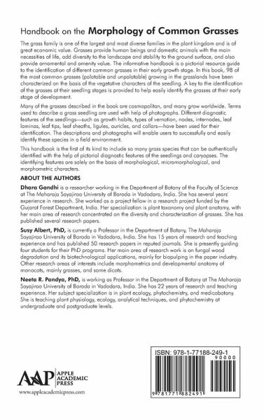 The grass family is one of the largest and most diverse families in the plant kingdom and is of great economic value. Grasses provide human beings and domestic animals with the main necessities of life, add diversity to the landscape and stability to the ground surface, and also provide ornamental and amenity value. The present handbook is a pictorial resource guide to the identification of different common grasses in their early growth stage. In this book, 100 of the most common grasses (palatable and unpalatable) growing in the grasslands have been characterized on the basis of the vegetative characters of the seedling. A key to the identification of the grasses at their seedling stages is provided to help easily identify the grasses at their early stage of development. Many of the grasses described in the book are cosmopolitan, and many grow worldwide. Terms used to describe a grass seedling are used with help of photographs. Different diagnostic features of the seedling-such as growth habits, types of vernation, nodes, internodes, leaf laminas, leaf tips, leaf sheaths, ligules, auricles, and collars-have been used for their identification. The descriptions and photographs enable users to successfully and easily identify these species in a field environment. The book has been divided into two main sections. The first section covers the characteristic features of the caryopses. It includes light and scanning electron microscopic features and a diagnostic key to the identification of the species. The second section deals with grass seedling morphology and provides a key to the identification of the species on the basis of early vegetative features. Each of the sections includes an introduction, materials and methods, and results, supplemented with microphotographs representing the features of identification. This handbook is the first of its kind to include so many grass species that can be authentically identified with the help of pictorial diagnostic features of the seedlings and caryopses. The identifying features are solely on the basis of morphological, micromorphological, and morphometric characters. This handbook will be an important reference book of value to students in basic grass taxonomy or ecology classes as well as to academicians, researchers, pasture management practitioners, as well as professionals working in grassland restoration.