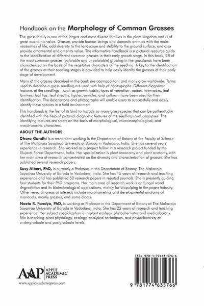 Dhara Gandhi is a researcher working in the Department of Botany of the Faculty of Science at The Maharaja Sayajirao University of Baroda in Vadodara, India. She has several years' experience in research. She worked as a project fellow in a research project funded by the Gujarat Forest Department, India. Her specializations are plant taxonomy and plant anatomy, with her main area of research concentrated on the diversity and characterization of grasses. She has published several research papers. Prof. Susy Albert, PhD, is currently a professor in the Department of Botany, The Maharaja Sayajirao University of Baroda in Vadodara, India. She completed her PhD in developmental plant anatomy from that university under the guidance of renowned plant anatomist professor J. J. Shah. She has 15 years of research and teaching experience and has published 50 research papers in reputed journals. She is presently guiding four students for their PhD programs. Her main area of research work is on fungal wood degradation and its biotechnological applications mainly for biopulping in the paper industry. Other research areas of interests include morphometrics and developmental anatomy of monocots, mainly grasses, and some dicots. Neeta R. Pandya, PhD, is working as professor in the Department of Botany at The Maharaja Sayajirao University of Baroda in Vadodara, India. She has 22 years of research and teaching experience. Her subject specialization is in plant ecology, phytochemistry, and medicobotany. She is teaching plant physiology, ecology, analytical techniques, and phytochemistry at undergraduate and postgraduate levels.