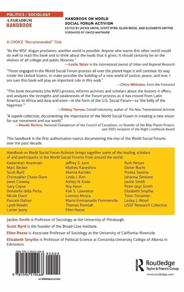 Introduction I: Background and Context 1: Social Forums as Public Stage and Infrastructure of Global Justice Movements 2: (In)Fertile Ground? 3: The Political and its Absence in the World Social Forum: 4: Surveys of World Social Forum Participants Show Influence of Place and Base in the Global Public Sphere II: Campaigns and Movements in the Social Forum Process 5: More Than a Shadow of a Difference? 6: Indigenous Peoples and Social Forums 7: Building National Labor Solidarity: 8: The World Social Forum as a Bounded Open Space: 9: Our World Is Not for Sale! 10: Global Environmentalists and Their Movements at the World Social Forums 11: The Road to the World Social Forum: III: Local Places and Global Spaces 12: African Voices and Activists at the WSF in Nairobi: 13: Global Movements in Local Struggles: 14: Diverging Visions of Another World in the Making of the Quebec Social Forum 15: In the Belly of Empire: IV: Democratic Innovations 16: Youth Camps and the Bolivarian Revolution 17: Deliberative Discussion and Languages in the World Social Forum Process 18: Democratic Innovation in the U.S. and European Social Forums 19: Transnational Movement Innovation and Collaboration: The Space as Actor