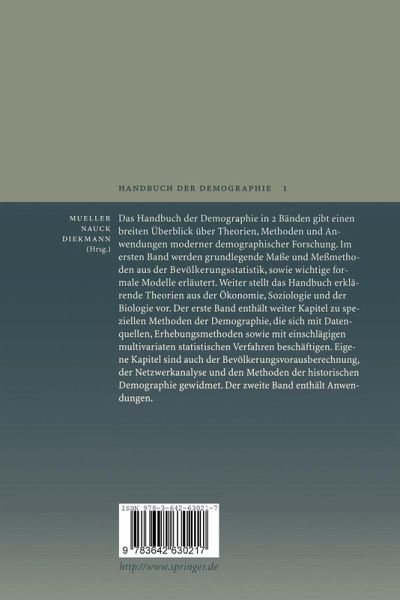 Das Handbuch der Demographie in zwei Bänden gibt einen breiten Überblick über Theorien, Methoden und Anwendungen moderner demographischer Forschung. Im ersten Band werden grundlegende Maße und Meßmethoden aus der Bevölkerungsstatistik, sowie wichtige formale Modelle erläutert. Weiter stellt das Handbuch erklärende Theorien aus der Ökonomie, Soziologie und der Biologie vor. Der erste Band enthält weiter Kapitel zu speziellen Methoden der Demographie, die sich mit Datenquellen, Erhebungsmethoden sowie mit einschlägigen multivariaten statistischen Verfahren beschäftigen. Eigene Kapitel sind auch der Bevölkerungsvorausberechnung, der Netzwerkanalyse und den Methoden der historischen Demographie gewidmet. Der zweite Band enthält Anwendungen.
