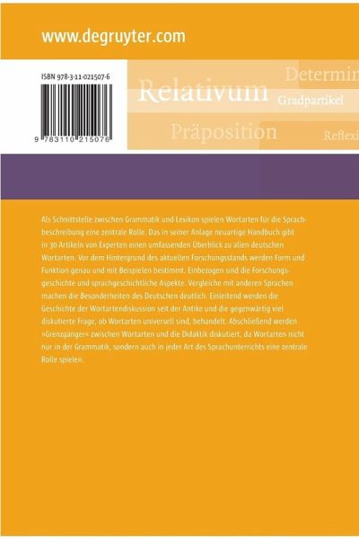"Das Handbuch gibt einen gültigen Überblick über die deutschen Wortarten aus einer vornehmlich funktionalen Perspektive." Klaus Welke in: Germanistik 1-2/2008